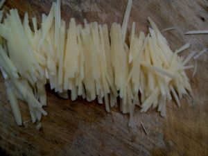 用工具将土豆镲成土豆丝,非常细的那种喔
