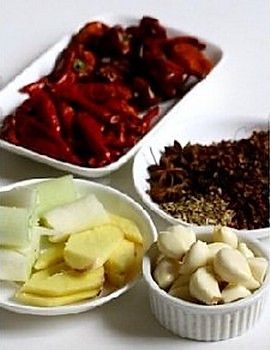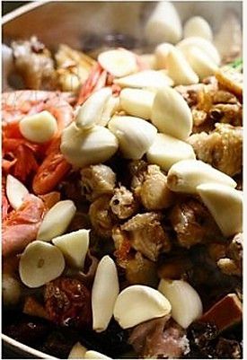 葱、姜切片,大蒜可整粒,也可一切为二为块