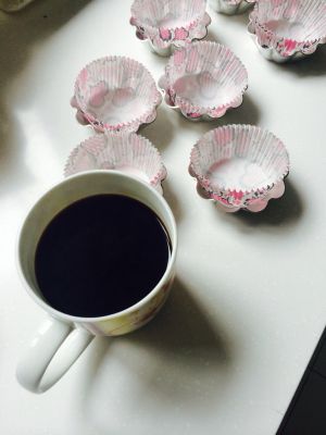 把它们装入容器中,我是纸杯蛋糕模,下面放了蛋挞模