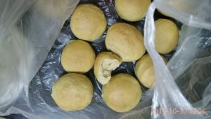 4小时后,慢慢看面团发至2倍大成蜂窝状,分成若干份揉面,揉成团状如图,揉好半小时再放入蒸锅蒸,我是直接冷水上锅蒸的。大概15分钟左右