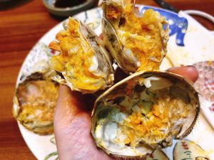肥美,即使不放任何调味料已经很鲜美了!膏很像吃咸蛋黄一样,回味!