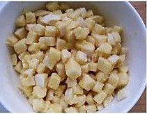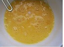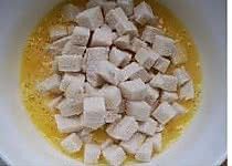 把切好的馒头丁放入鸡蛋液里,搅拌均匀。