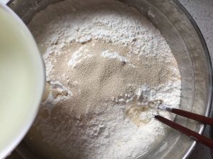 拿去筷子,用手将面粉揉成光滑的面团,盖上湿布放在温暖处或者烤箱中发酵