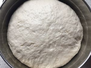 酵母加水化开后,加入全麦面粉和盐一起揉成光滑面团,醒发1小时,面团戳个洞不回弹就行