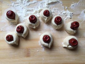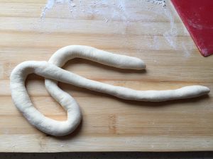 取两根扭成麻花状,从中间往外轻卷起,我们的馒头生胚就做好了