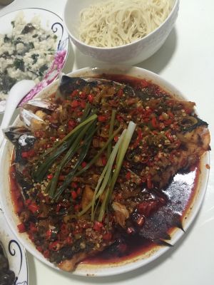 水开后鱼头蒸15-20分钟,根据各家灶的火力而定,再淋上蒸鱼豉油就可以出锅了,