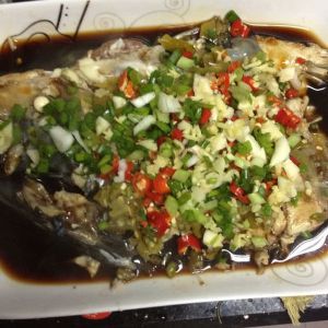 国内放油少许.花椒少许.小火炸香花椒.捞出花椒大火把油烧热.冒烟.浇鱼身上.噼里啪啦满屋香气.就好了可以上桌开吃了