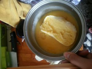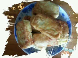 锅里到油,油热了把裹好鸡蛋液的馒头放里煎,煎的均匀一些这样煎完了会更好吃
