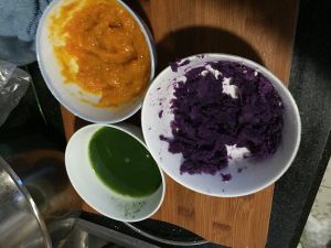准备食材 菠菜煮了之后榨汁 南瓜紫薯都是蒸熟的