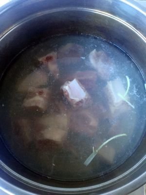 放凉水里煮开 血沫子啥滴就都飘上来了 关火 把排骨捞出来 注意被粘到血沫子啊 你要是讲究人就把血沫子瓢干净在捞肉 可惜俺不是 就扒拉一边就行了