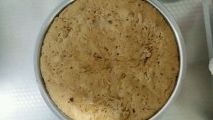 把面粉和刚刚打好的汁水混在一起~揉匀~放酵母发酵呦~
