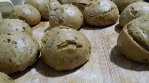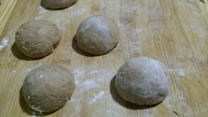 发过之后面团会变大变软,这时剥下塑料袋,在面案上揉面团,四边往中心卷揉,揉一会儿就行,三分钟吧。