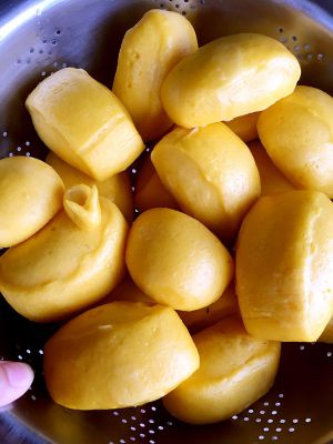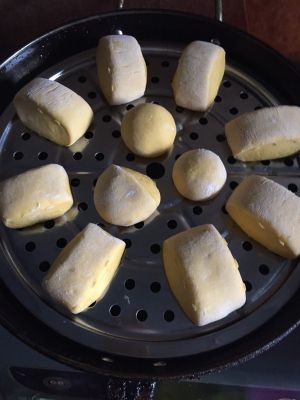 发好的面粉放案板揉出来气泡,然后等大小一样的等分,在揉圆,放锅里,二次发篠30分钟,大火烧开就可以啦