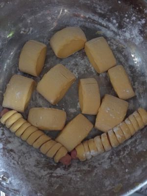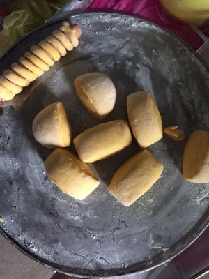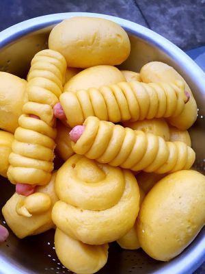 5.把发酵好的面团分成若干块,做成自己想做的花样!