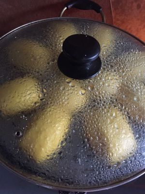 发酵好了之后,放入锅上小火蒸半个小时,后关火闷5分钟,充满着桂花酒酿香味的小馒头就出锅啦