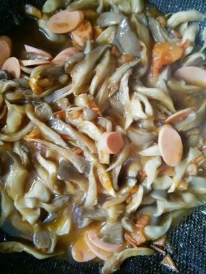 炒的面色变黄,自己能感觉到面炒熟了。可以加热水了。根据菜量,适量加水。稠稀自己掌握喔。