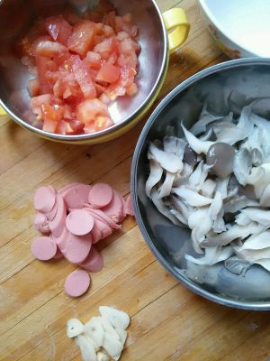 鸡蛋加入少许胡椒粉 食盐打散,然后准备其他蔬菜切碎!