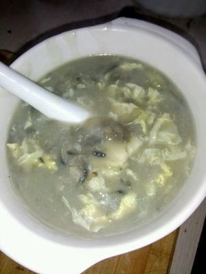 倒进去鸡蛋后,再小火煮四五分钟。期间一定要搅拌。别糊锅。出锅也可以加上香油。随意。