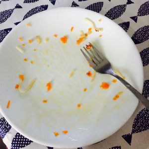 根据面条的性质,不宜煮太软,我选用的面条是陈克明面条,煮3~4分钟后将面条放入凉水,待冷却后放入干净的盘子中。