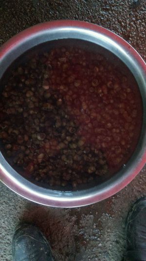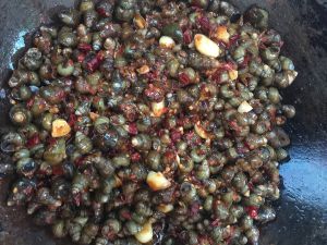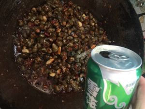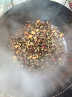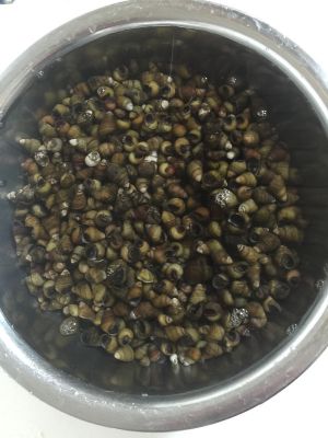 浸泡半天后再反复的搓洗田螺,边搓洗边换水,知道水清澈!