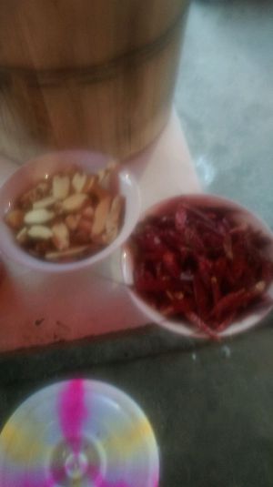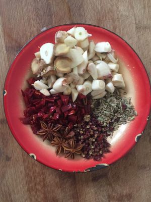 准备调料(花椒,辣椒,八角,小茴香籽,蒜瓣,生姜,豆瓣酱)