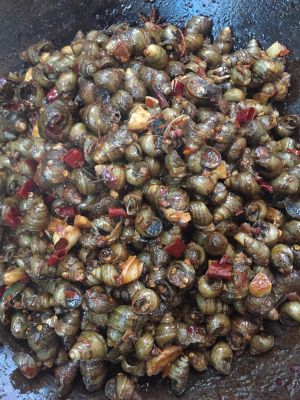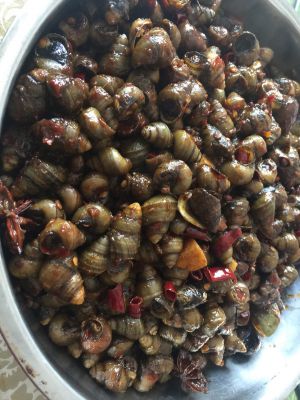 买回来的田螺反复搓洗换水几遍后,加适量盐搅匀,浸泡半天,让田螺把肚子里的泥沙吐出来!