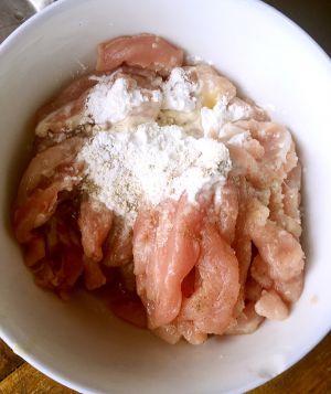肉丝放小碗中,加一个蛋清,两勺料酒,一勺老抽,一勺淀粉,一小勺盐,一小勺鸡精,一小勺白胡椒。拌匀,静置15min。