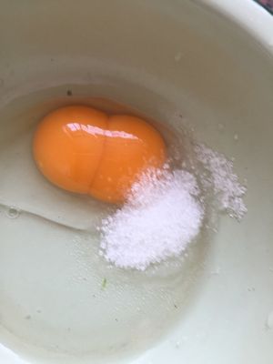 打开发现又是个双胞胎蛋,加入白糖打均匀