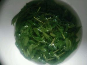 锅内添水,烧开后放入洗净的香椿焯水,变成绿色捞出