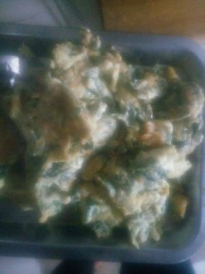 放入香椿蛋液,翻炒至半干略湿的状态时盛出,此时的口感最佳