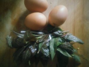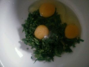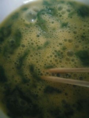 鸡蛋敲碎打散,将香椿末全部放入鸡蛋液里,加盐搅拌