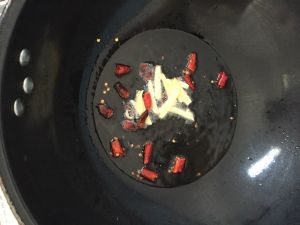 锅中烧油,油热放入花椒(20多粒),起味将花椒捞出,放入冰糖(20粒)