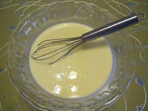 加入蛋黄和低筋面粉,搅拌均匀,过筛即成挞水。