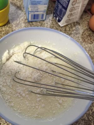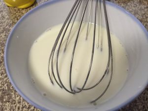 淡奶油,牛奶,低筋面粉,糖混合均匀,可用刮刀压的没有颗粒
