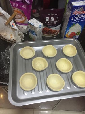 拿小面团放置挞模中,拿拇指轻轻按薄按至服帖(因为第一次做,手感很差,图中算是比较漂亮的那个了,嘿嘿)