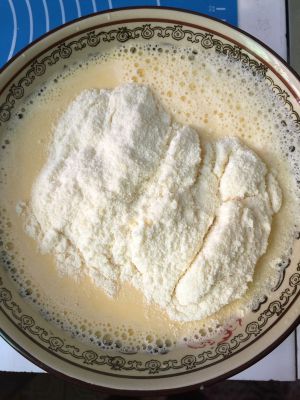 筛入吉士粉 搅拌 然后挞水过筛两次