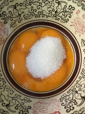 白糖加入蛋黄中搅拌均匀至白糖溶化