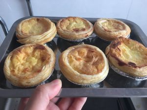 放入烤箱上下烤箱,选择内置菜单蛋挞模式即可