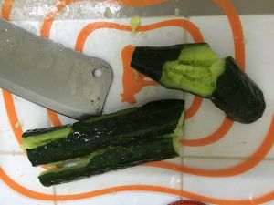 用刀背拍黄瓜 拍裂开即可,然后切块