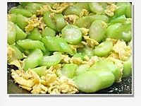 鸡蛋盛出,少许油,倒入丝瓜,翻炒5成熟,加入鸡蛋,调味料