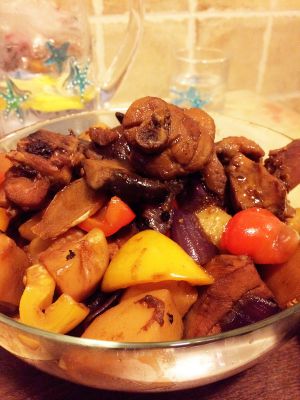 加入啤酒和清水,大火15分钟左右改小火,带汤汁浓稠时加入彩椒和盐,就可以出锅了