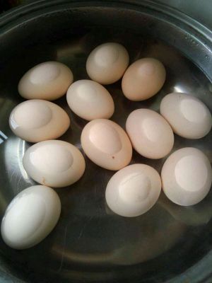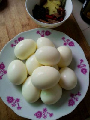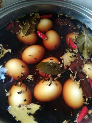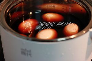 水煮到第一次沸腾的时候要加入一点点凉水,防止蛋壳破裂。鸡蛋煮十五分钟就行了,这时候拔电源,让鸡蛋在卤汤里浸泡一夜。