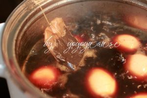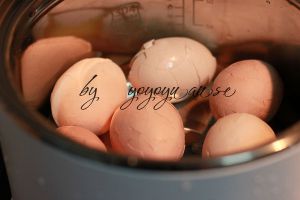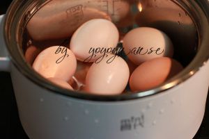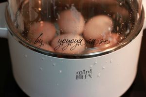 放入包好的鸡蛋,按下煮饭键,煮十五分钟。
