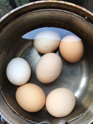 鸡蛋洗干净,凉水下锅!煮熟(判断煮熟的标准是,煮好捞出在桌子上能转起来就熟啦!)