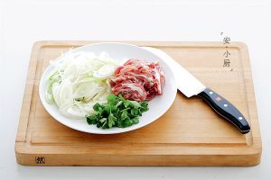 羊肉片要提前腌制一段时间 羊肉片中加入半勺胡椒粉 半勺盐 一勺酱油 两勺料酒 一点蛋清 一点淀粉 抓匀腌制五分钟