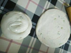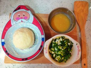 温水和面 好了之后放置半小时 葱切碎 20g油加等量面粉加少许盐和花椒粉(没有花椒粉可以不放)制成油酥