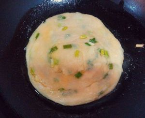 把擀好的饼入锅,定型后翻面刷油烙到两面金黄即可!