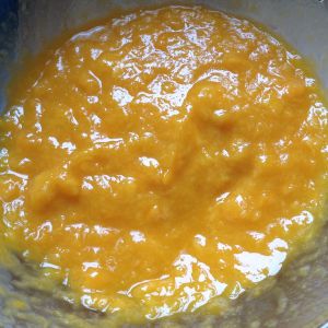 先把QQ糖融化备用,把牛奶热至80度一次加入沙糖、搅拌融化,加入淡奶油搅拌均匀,加入芒果泥搅拌均匀