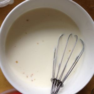 5、吉利丁片加牛奶,微波炉加热2分钟;