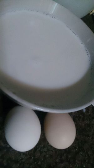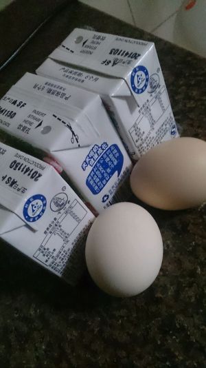 待牛奶冷却后(把碗放进冷水中了加速冷却),将打散的鸡蛋倒进去(记得牛奶不能是热的,不然就成蛋花喇)